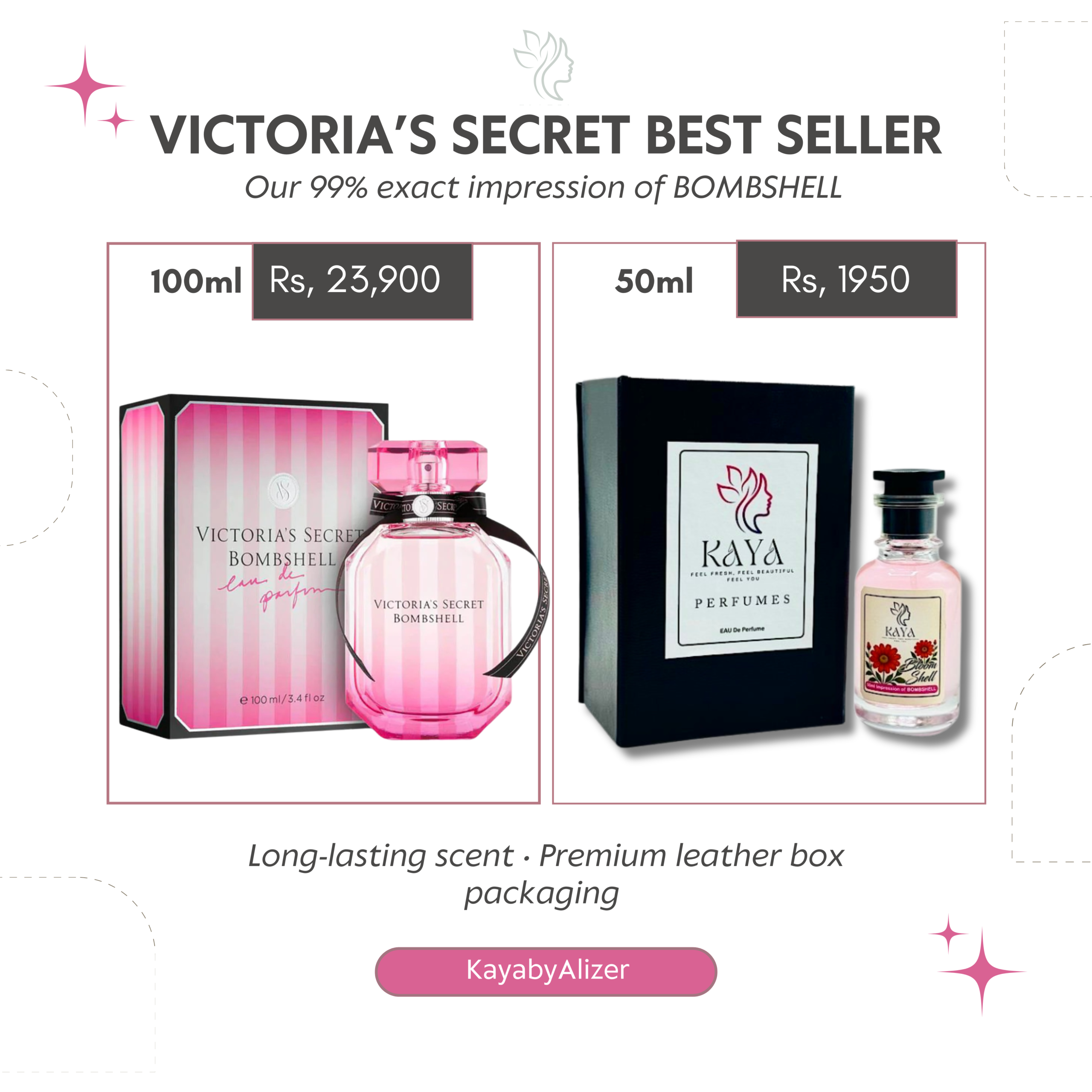 At KAYA, we bring you the extravagance of exquisite fragrances at a division of the cost. Encounter the sensation of wearing Victoria Secret Bombshell without the heavy price tag. Get the soul of a Victoria Secret Bombshell price in Pakistan at the most reasonable rates, embrace the fruity–sweet charm, and leave your mark with Bloomshell. Find it only at KAYA. Elevate your collection today with this captivating creation and let your fragrance rule. Place your order now, and let the regal smell of “Bloomshell” motivate each moment of your day.